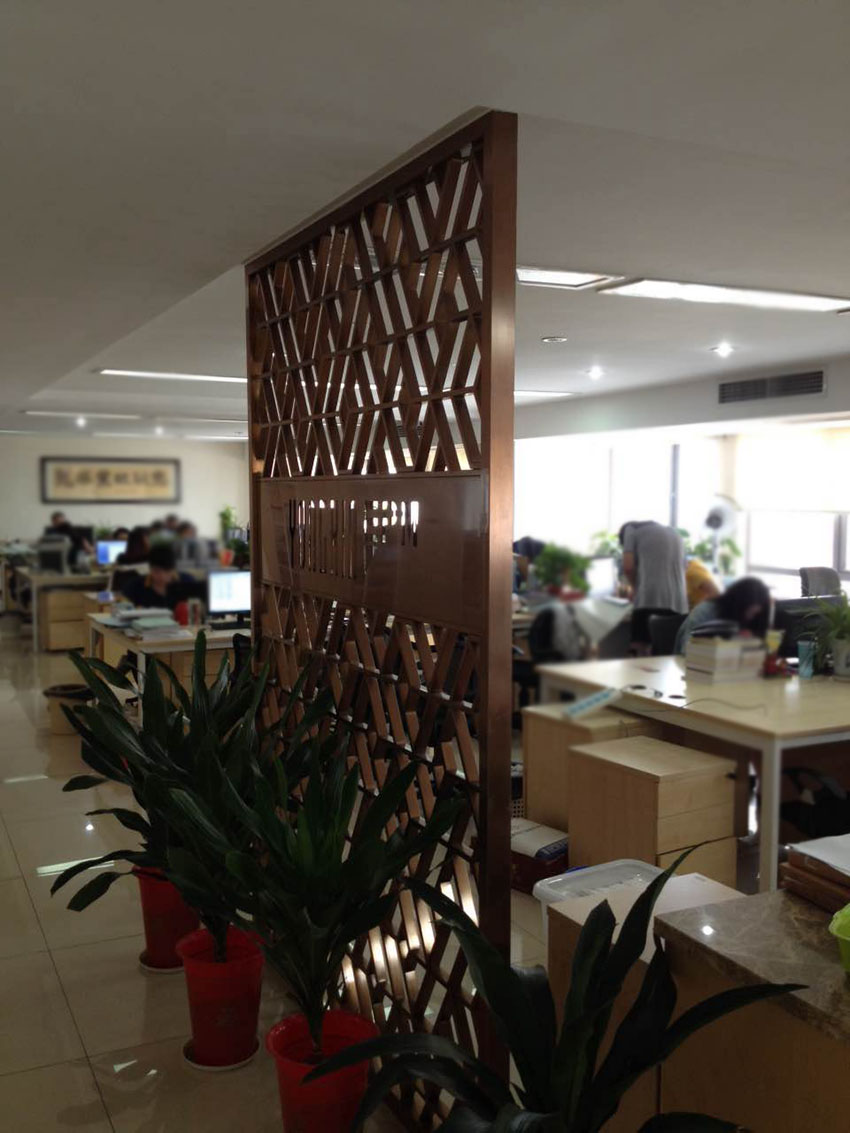 紅古銅拉絲不銹鋼屏風(fēng)加工跟其他的加工方式基本上一樣,都是通過激光切割將不銹鋼板切割出自己喜歡的圖形,然后通過折彎焊接加工出U型槽將鏤空好的圖案卡在里面,最后焊接框架就可以了。唯一的區(qū)別,就是表面處理工藝的不同,現(xiàn)在屏風(fēng)加工的表面處理非常多,可以針對各種中式、歐式、美式等各種不同的裝修風(fēng)格。