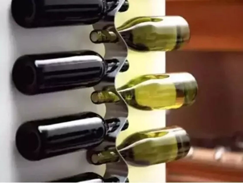 用不銹鋼做的蜿蜒曲折酒架,好像一條流淌的小河,靈感源于流動的液體。酒架用不銹鋼做成,經(jīng)過打磨處理,放酒。簡單,結(jié)實,實用。